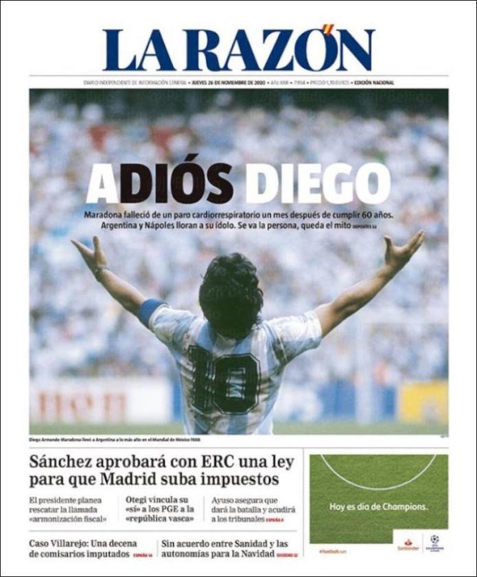 for "Przegląd Sportowy Maradona : Diego Maradona S Passing Dominates Front Pages Around The World In The Hands Of God"