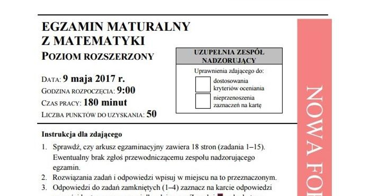 50 formuła od 2015 nowa matura. Zobacz rozwiązania zadań do arkusza, który podała centralna. Maturzyści zmierzyli się z królową nauk, czyli matematyką. W poniedziałek 15 czerwca odbyła się matura z matematyki na poziomie rozszerzonym. W tym artykule, po zakończonej maturze z matematyki na poziomie rozszerzonym znajdziecie arkusze i odpowiedzi.