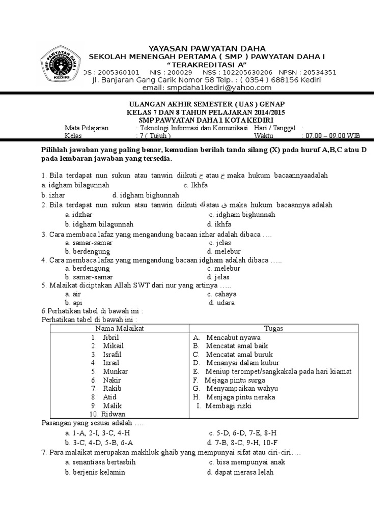 Sebagaimana yang kita ketahui bersama bahwa. Tulislah terlebih dahulu identitas (nama, kelas, dan nomor peserta) pada lembar jawaban. Semakin banyak berlatih mengerjakan soal, maka kemampuan dalam menjawab soal akan semakin meningkat. 18 016 просмотров • 4 мар. Pada artikel kali ini saya akan membagikan soal dan kunci jawaban penilain tengah semester (pts) mata pelajaran prakarya kurikulum 2013 jenjang smp kelas 7 semester genap revisi tahun 2019.
